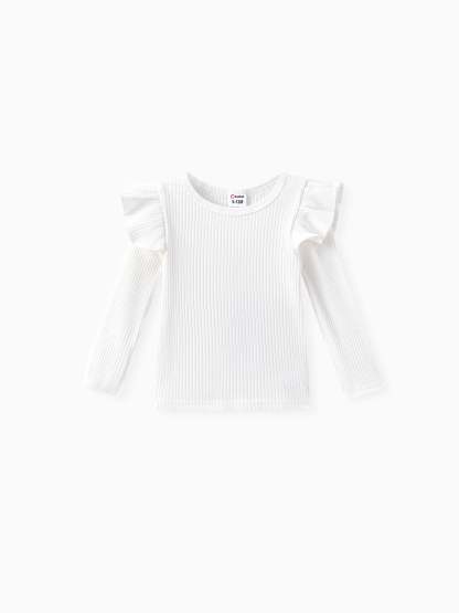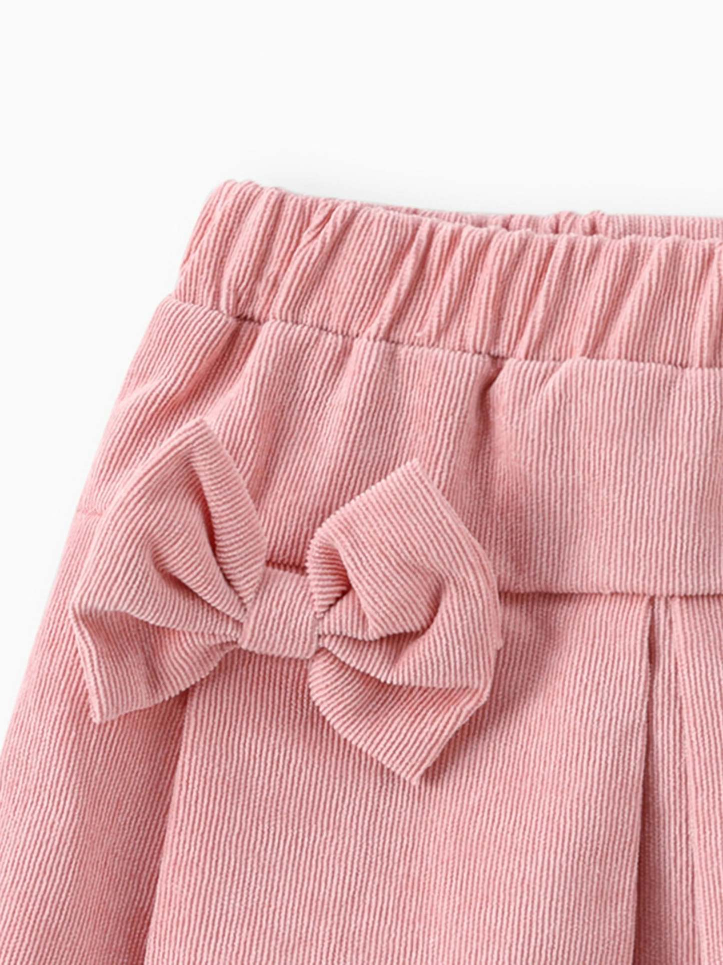 3-teiliges Baby-Mädchen-Set aus 95 % Baumwolle mit gerippten Rüschen und langen Ärmeln, Rock und Stirnband rosa