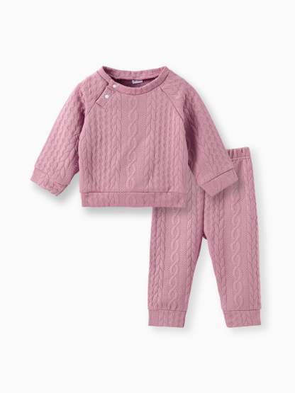 Halte deinen Jungen oder dein Mädchen mit unserem Solid Long-sleeve Imitation Knitting Set bequem und stilvoll. Dieses Basic-Set ist für jede Gelegenheit und jede Jahreszeit geeignet. Es verfügt über einen elastischen Bund, Druckknöpfe auf der rechten Schulter und einen dick, weichen und gemütlichen Stoff, der deinen Kleinen den ganzen Tag über glücklich und warm fühlen lässt.