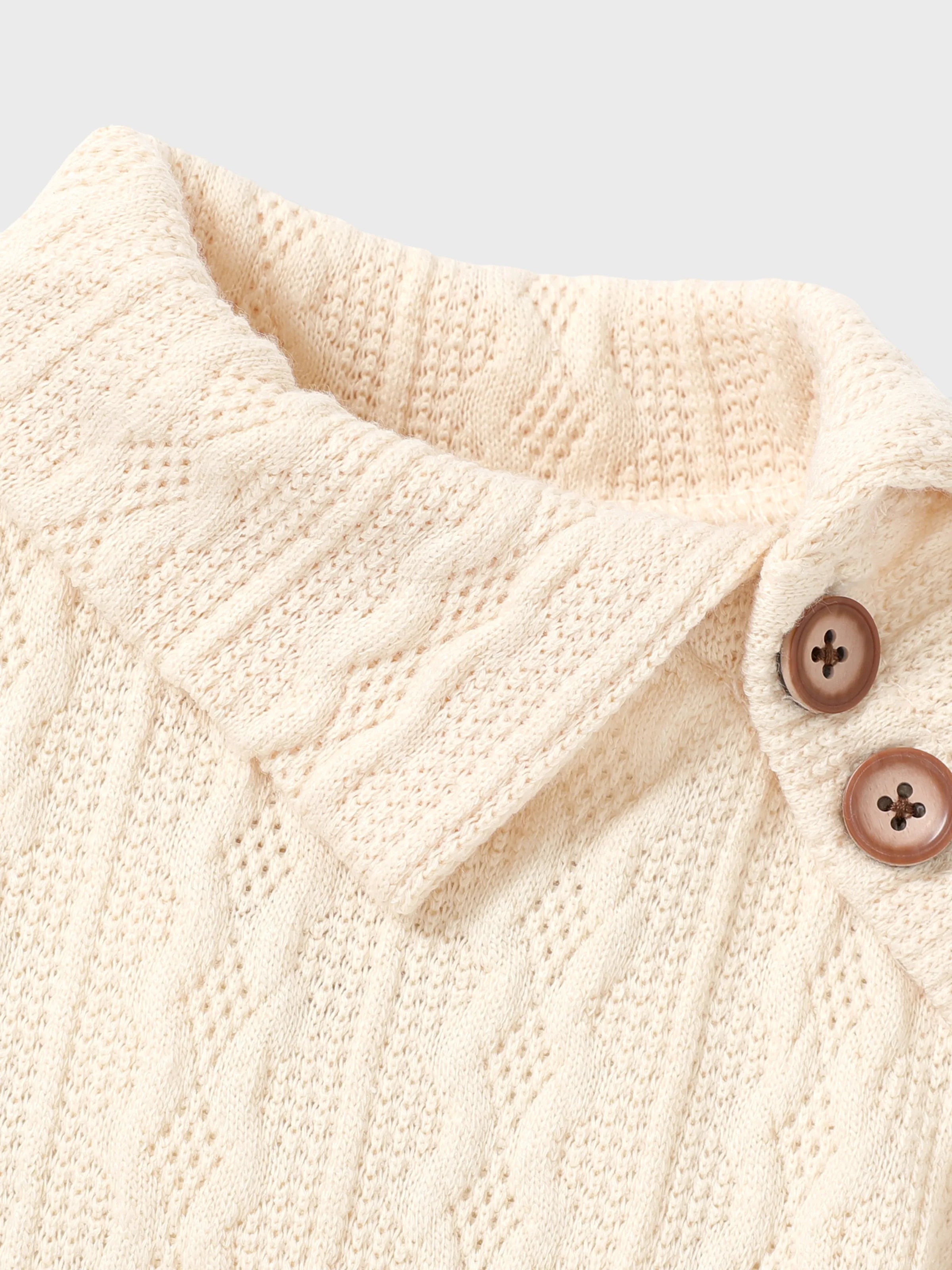 - Ausschnitt: Umgeklappter Kragen mit Knöpfen