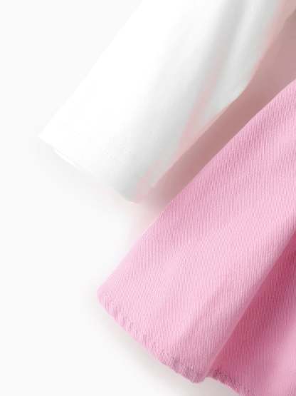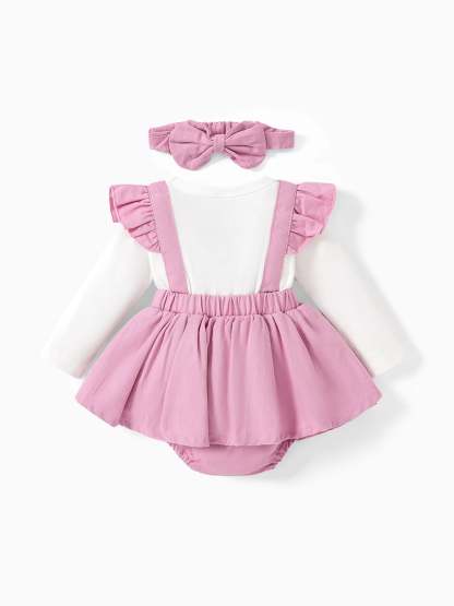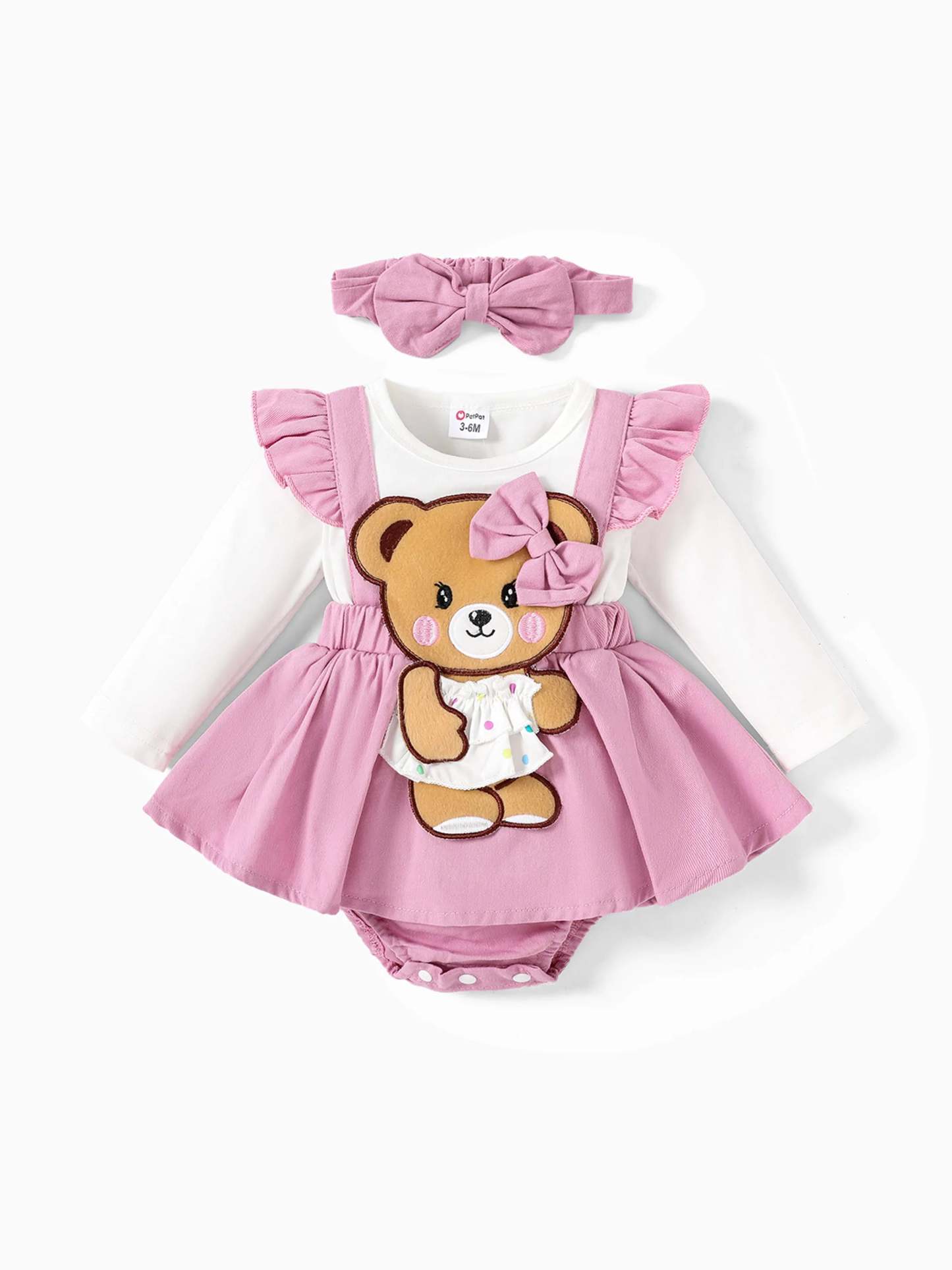 Mädchenkleidung Bärenstil bestickter Einteiler mit Haarband Rosa