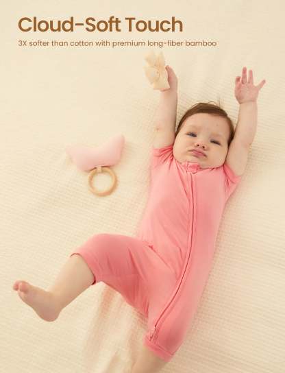 Keep your baby cool and comfortable with our bamboo fiber and spandex blend infant pajamas, designed for peaceful nights and easy diaper changes.
