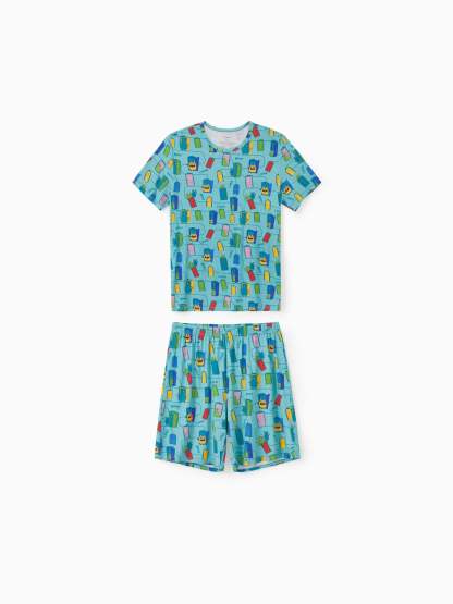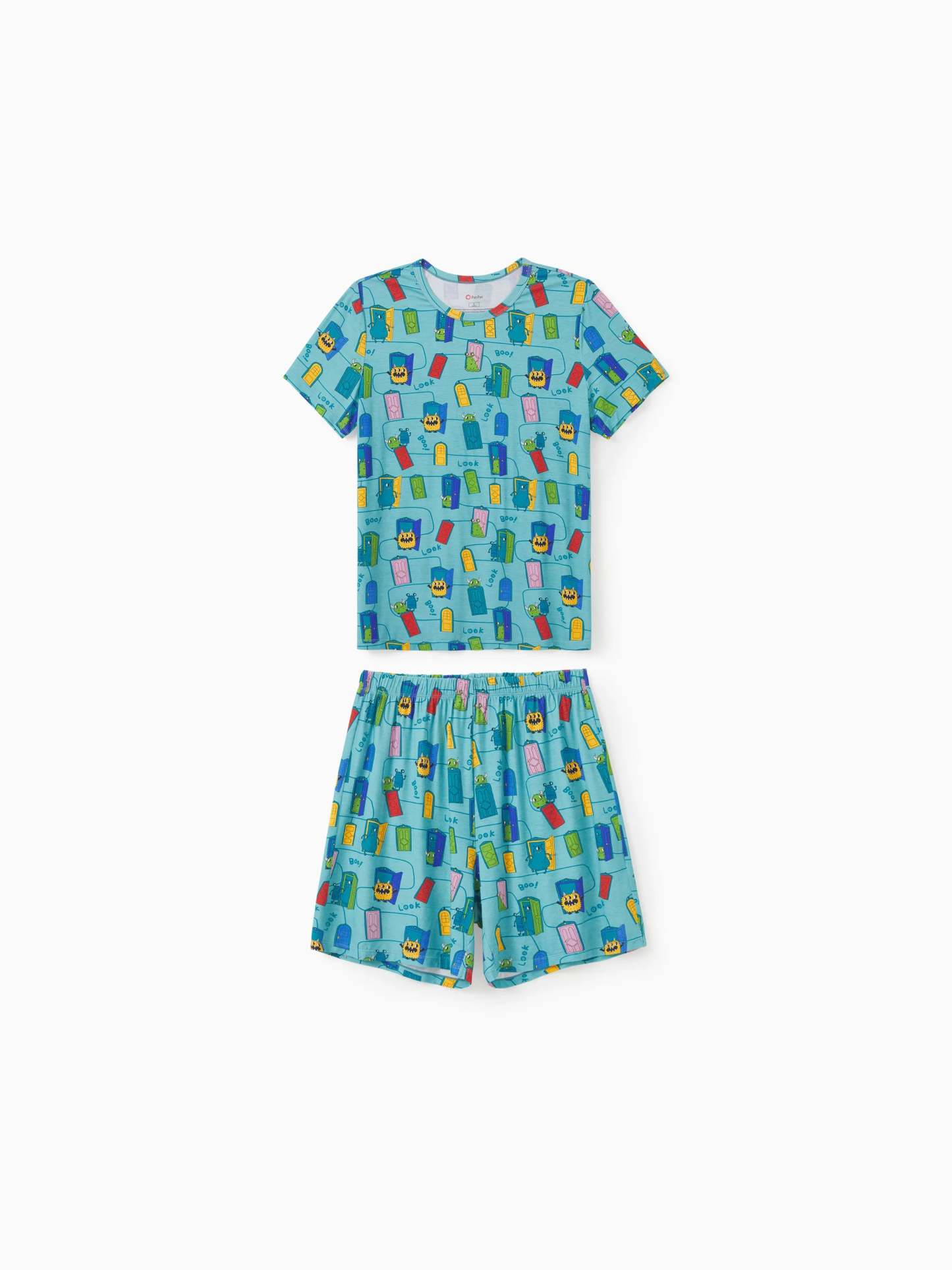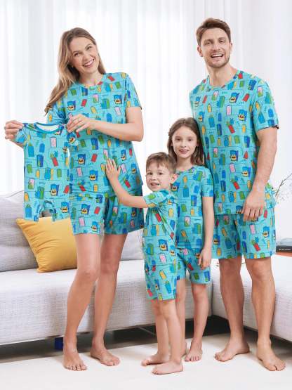 Cute family matching pajamas featuring cartoon patterns for summer daily wear.
