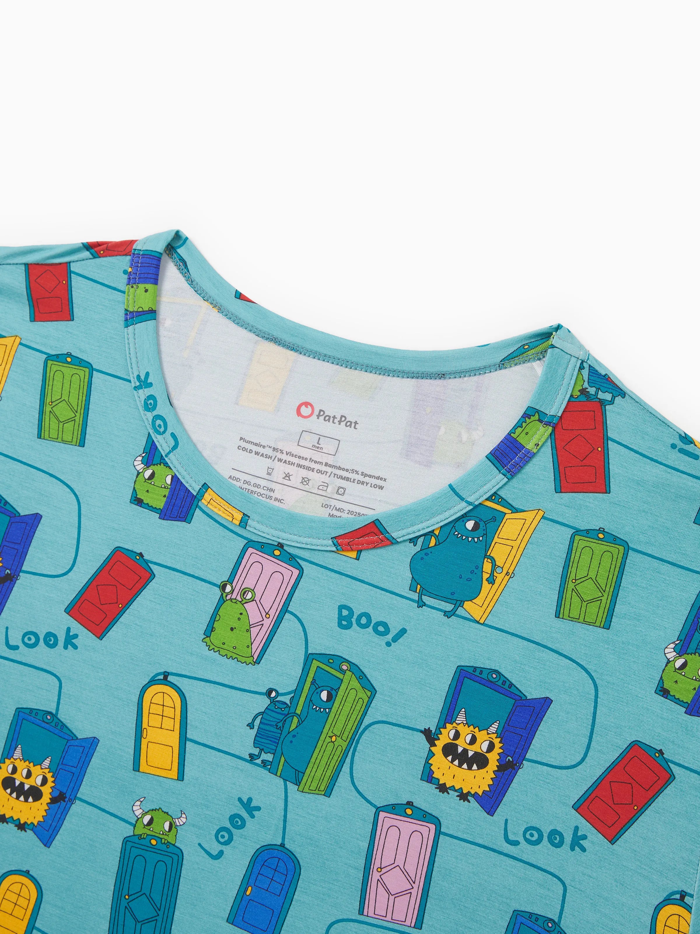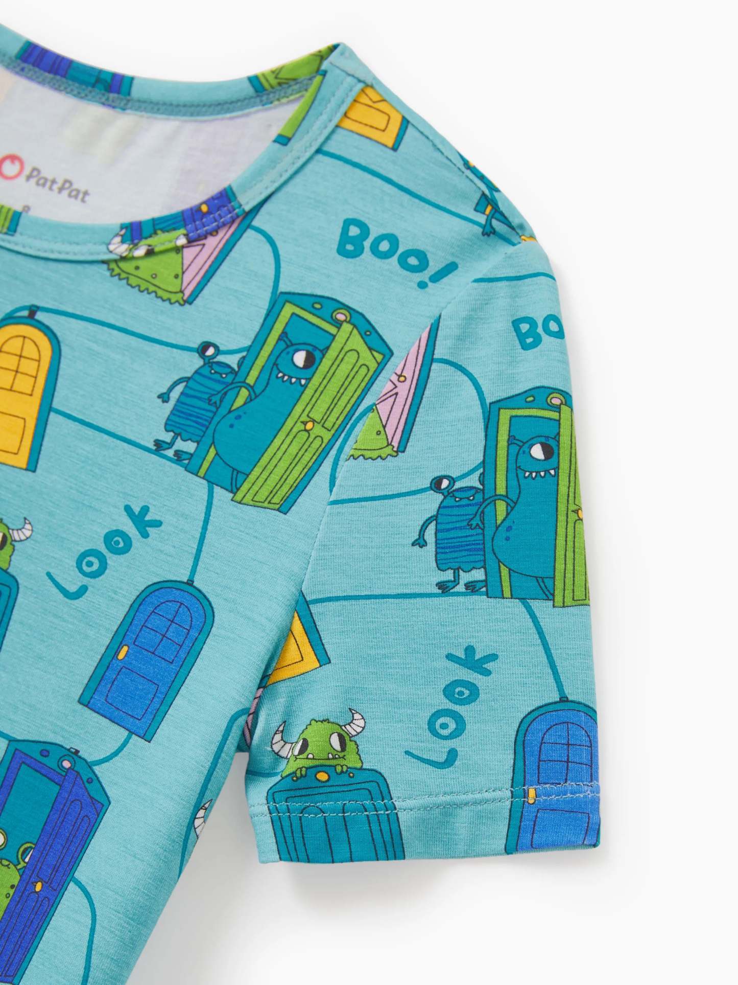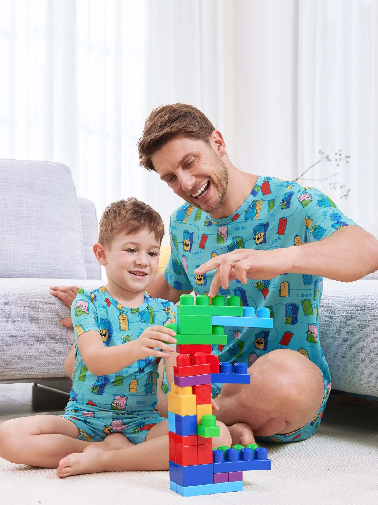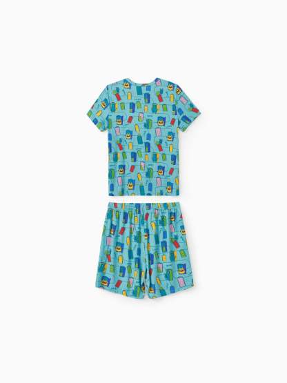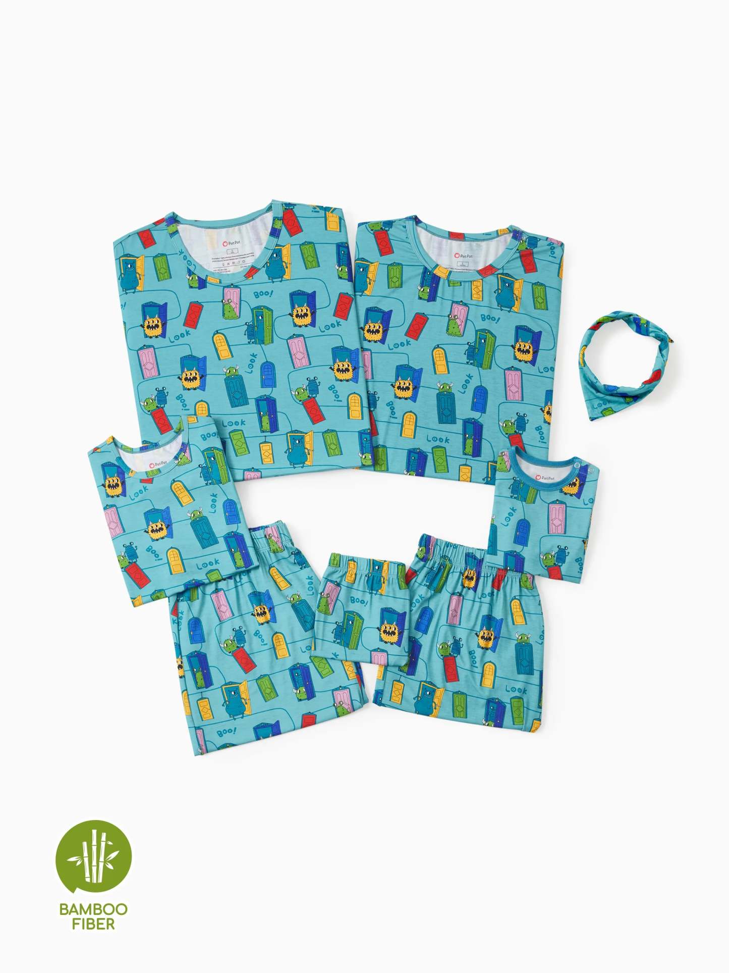 Bamboo Family Pajamas Cartoon Print Short-sleeve Matching Pajama set ( Snug-Fitting for Children ) Green