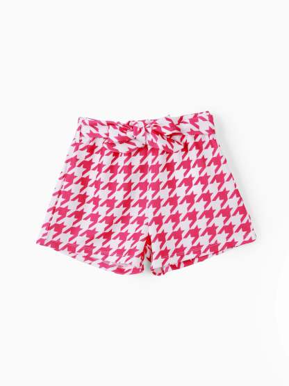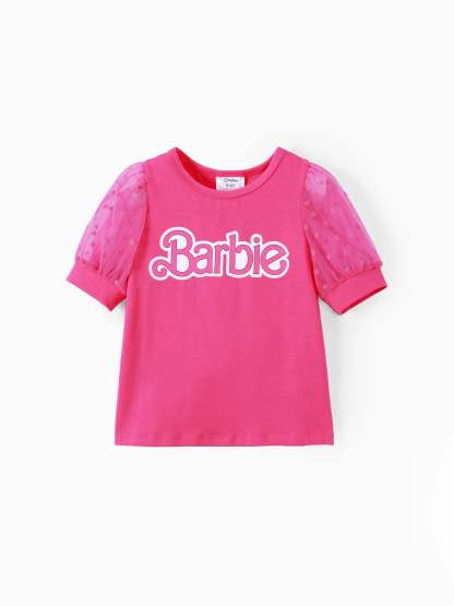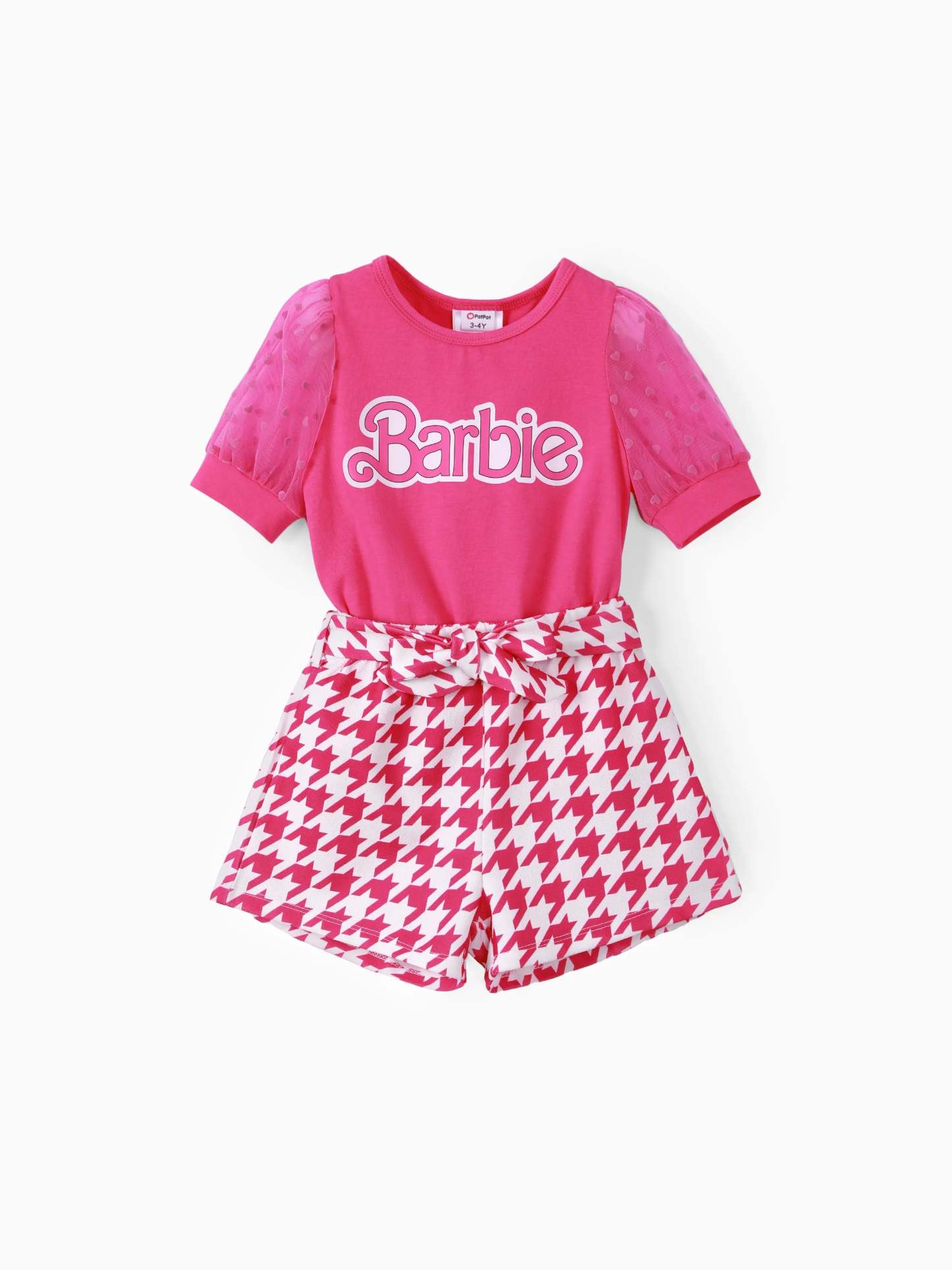Barbie Toddler/Kid Girl 2pcs Plaid Puff-sleeve Bowknot Set PinkyWhite