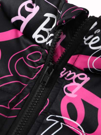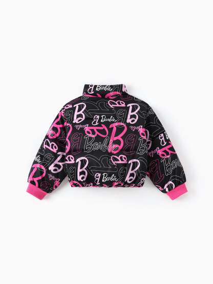 Barbie Toddler/Kid 1pc Logo Pattern Long-sleeve Crop Puffer Jacket Multi-color