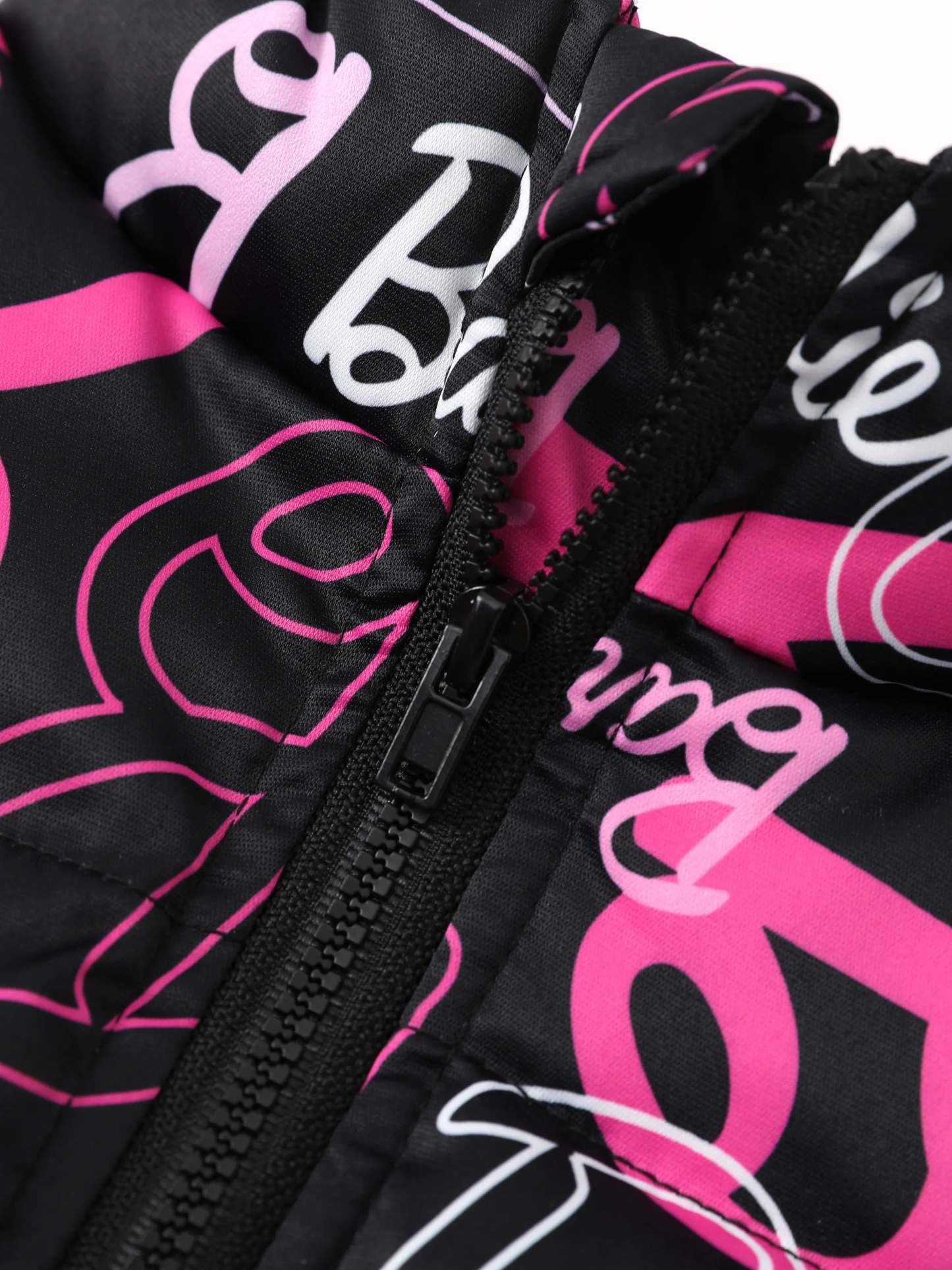 Embrace the playful spirit of Barbie with this Officially Licensed Disney Merchandise. This short puffer jacket features Barbie's logo in her iconic pink hue, offering both fashion and comfort for you and your little one.