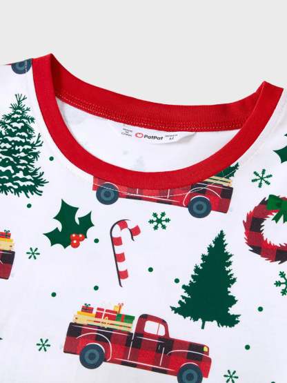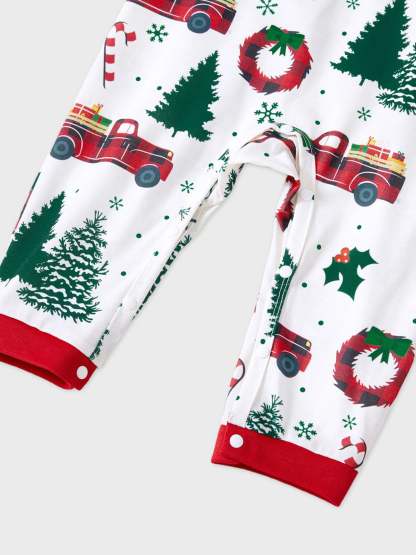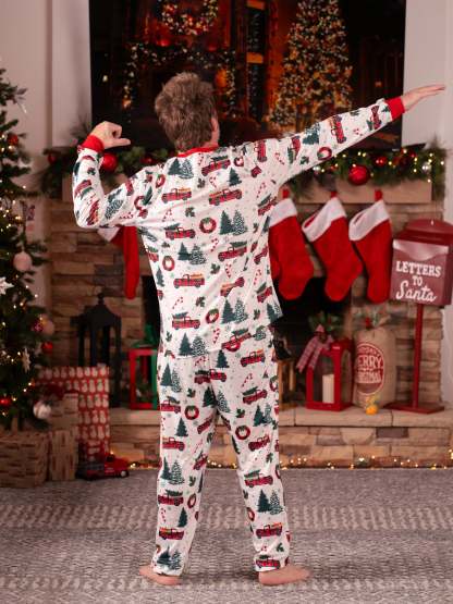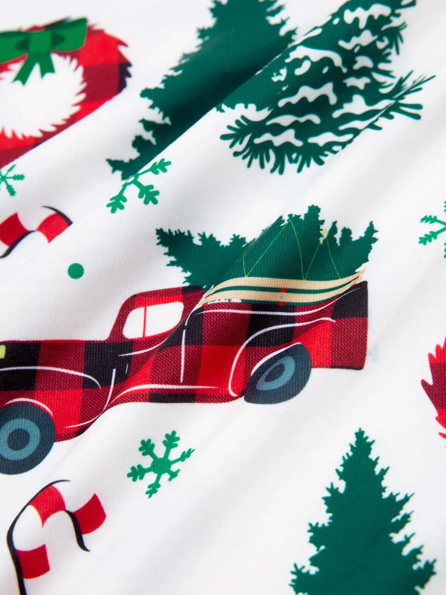 Christmas Family Matching Allover Xmas Tree & Car Print Long-sleeve Pajamas Sets with Christmas Socks Multi-color