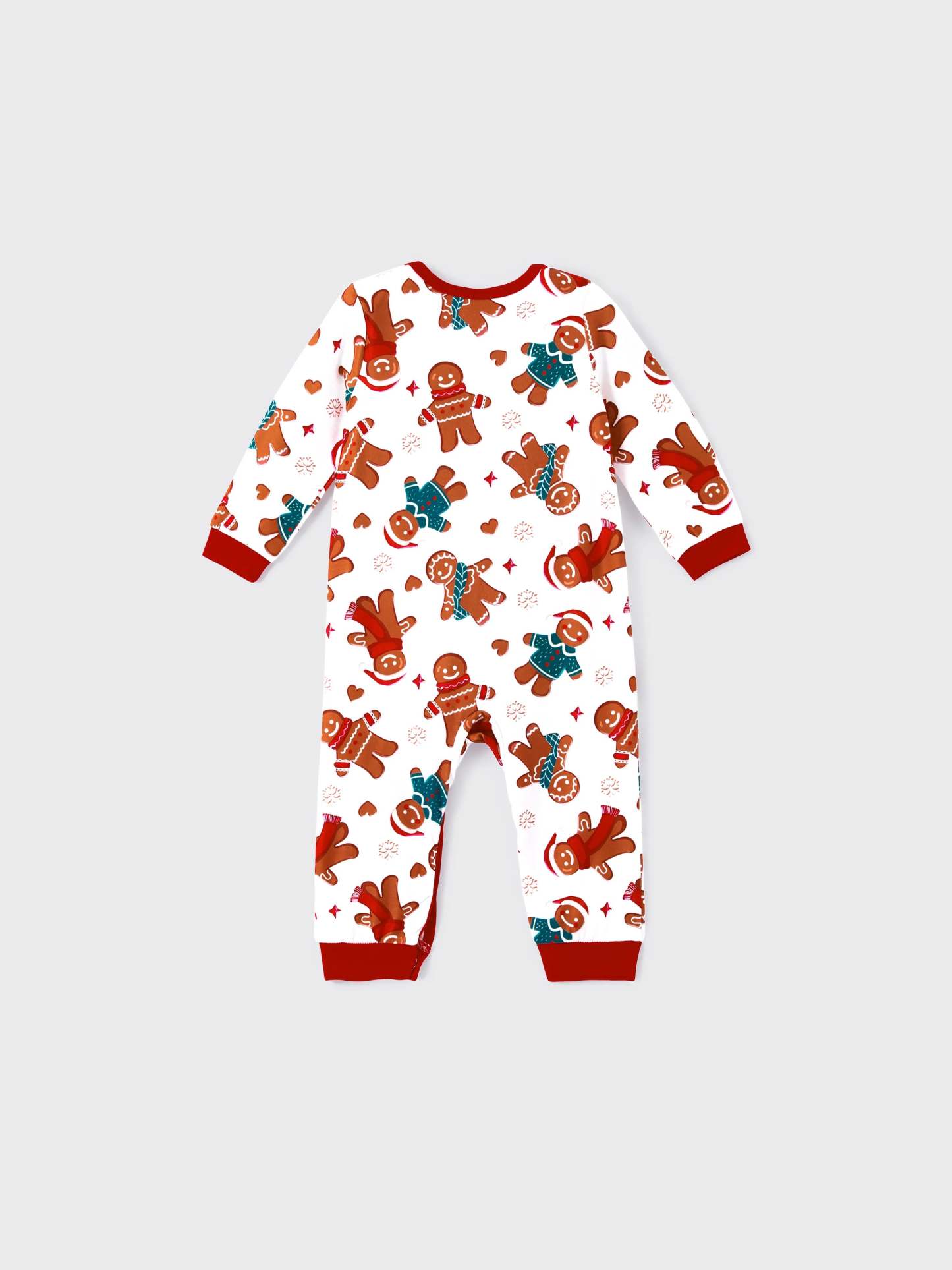 Christmas Family Matching Cartoon Gingerbread Man Allover Print Pajamas Sets with Christmas Socks White