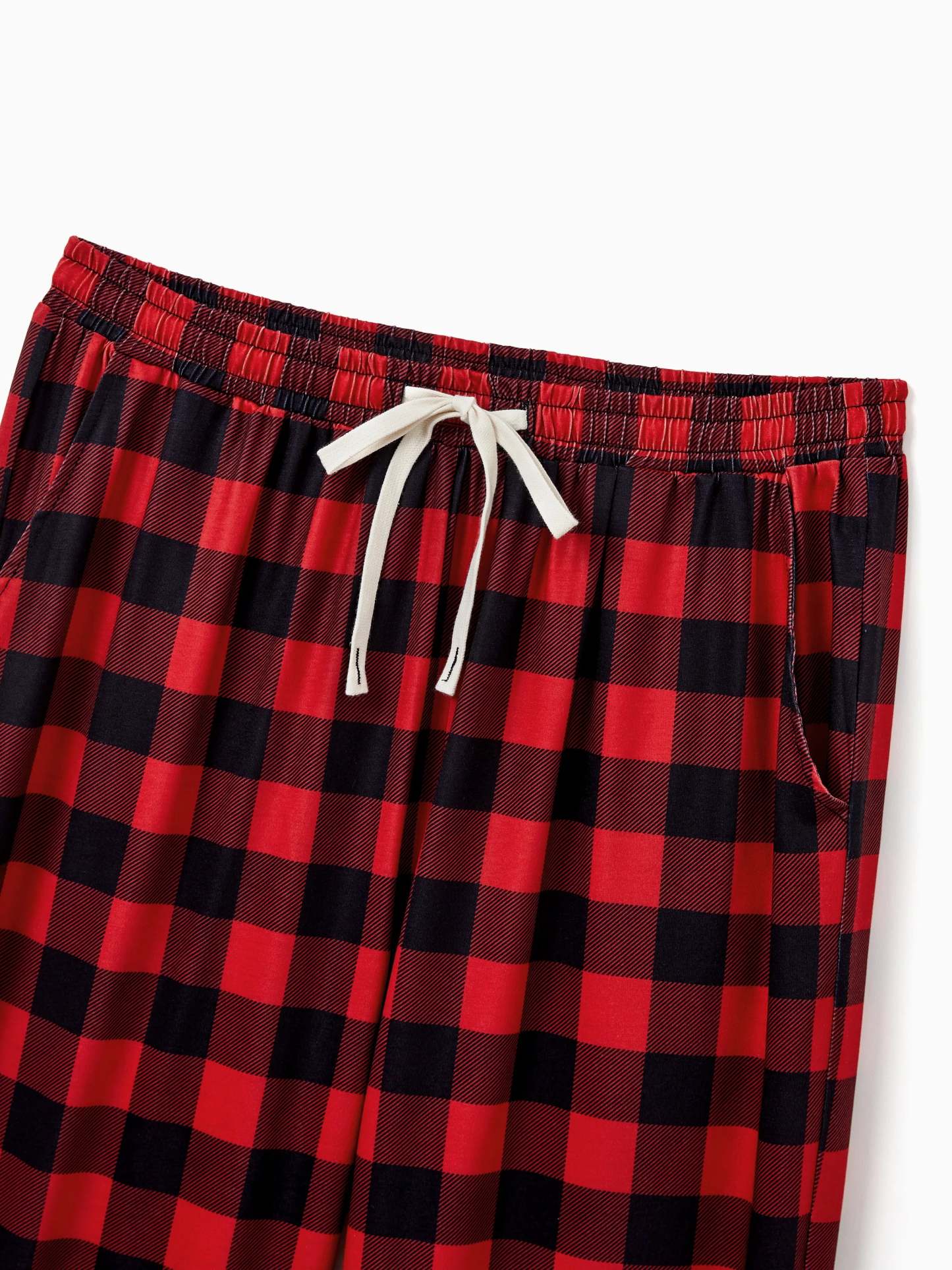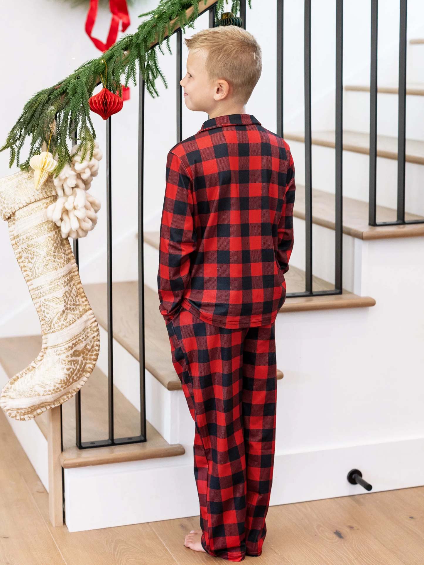 • Pajama sets include festive buffalo plaid socks (except pet size).