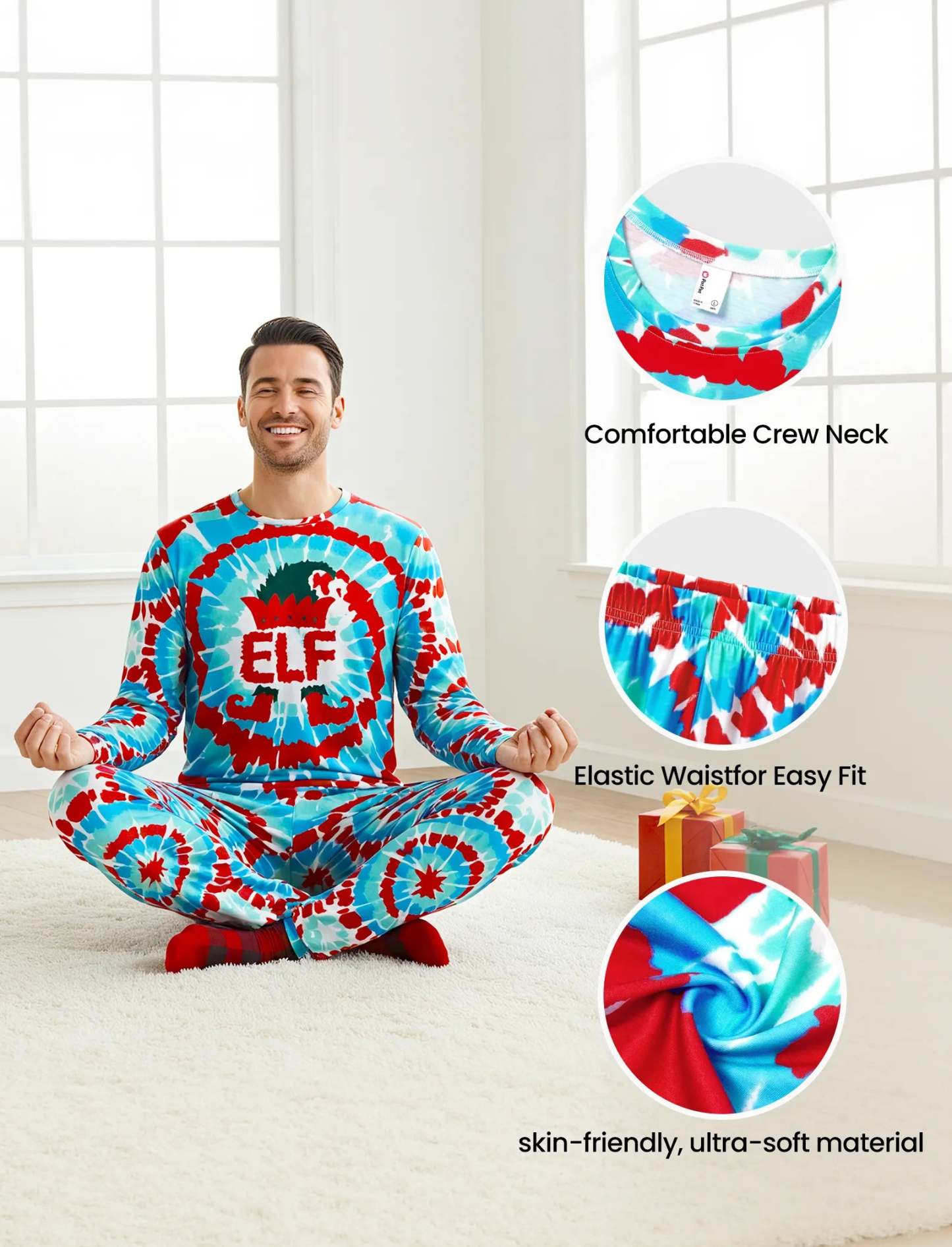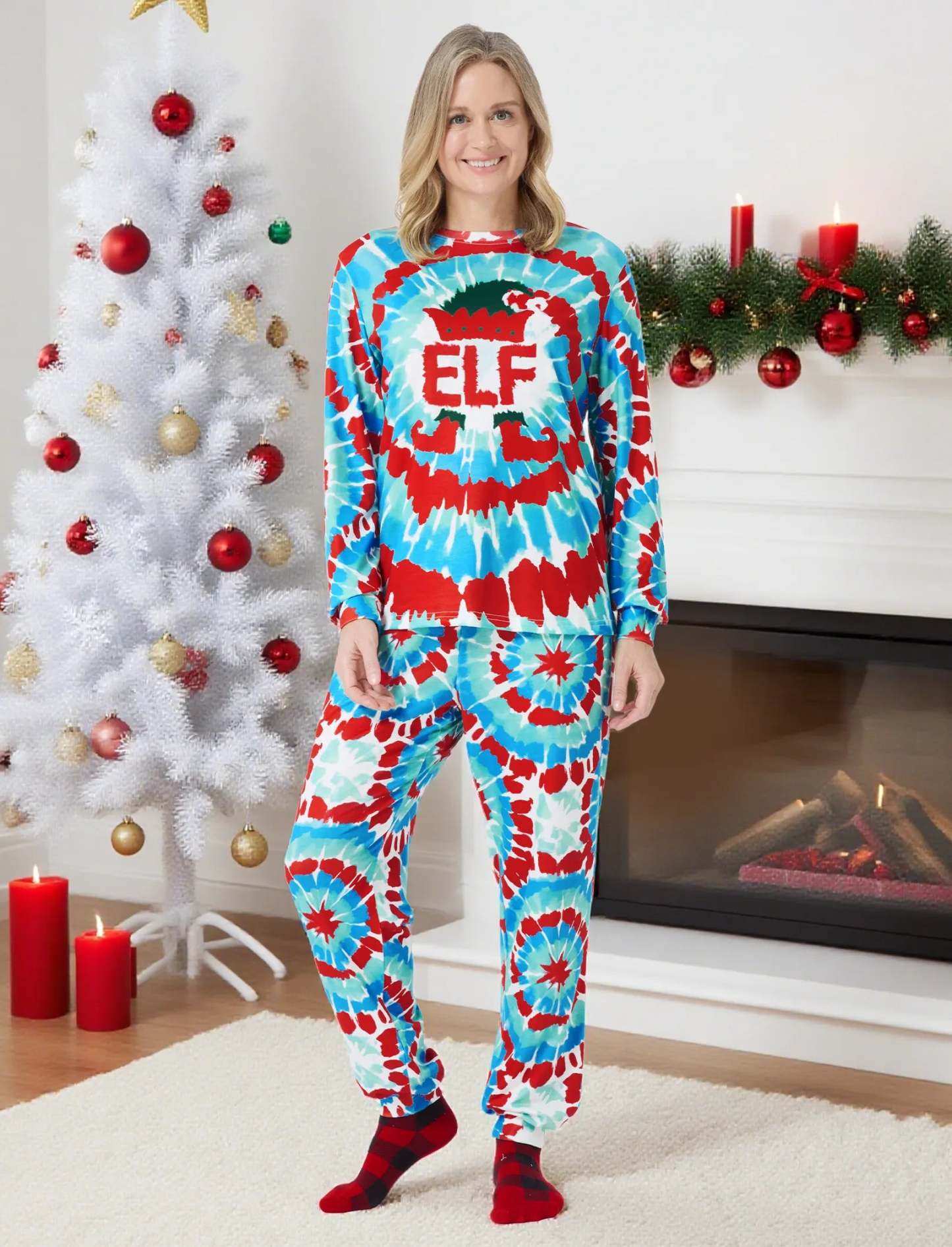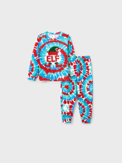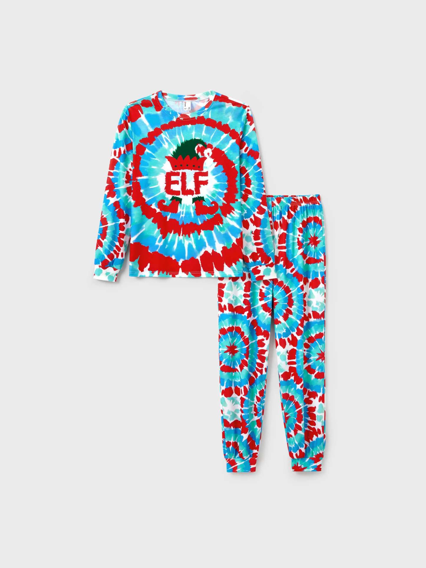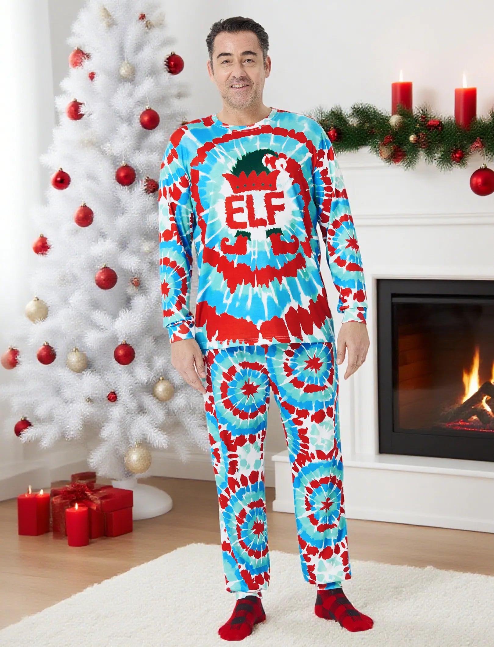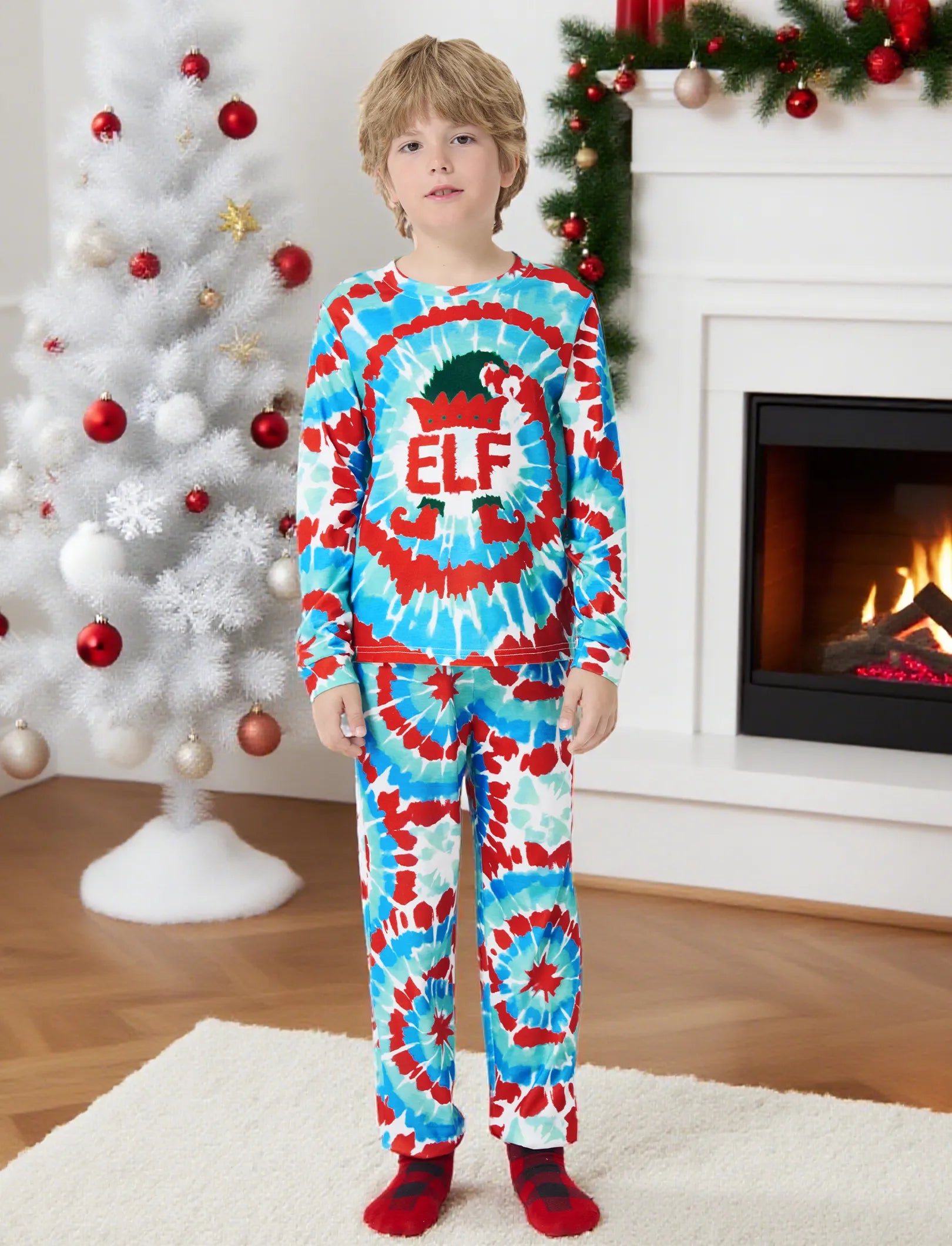Christmas Matching Family Pajamas Set Christmas ELF Print Tie Dye Long-sleeve PJS with Christmas Socks Multi-color