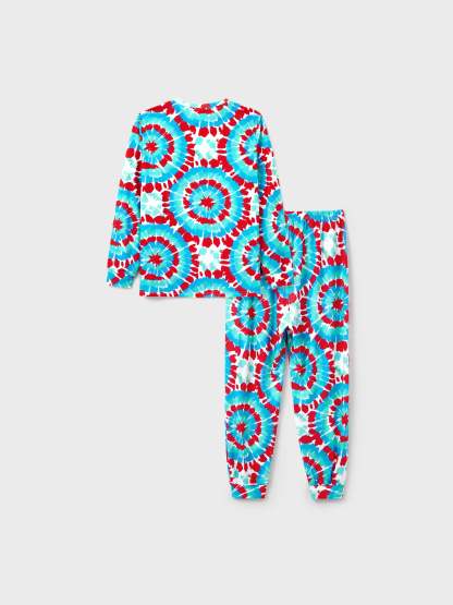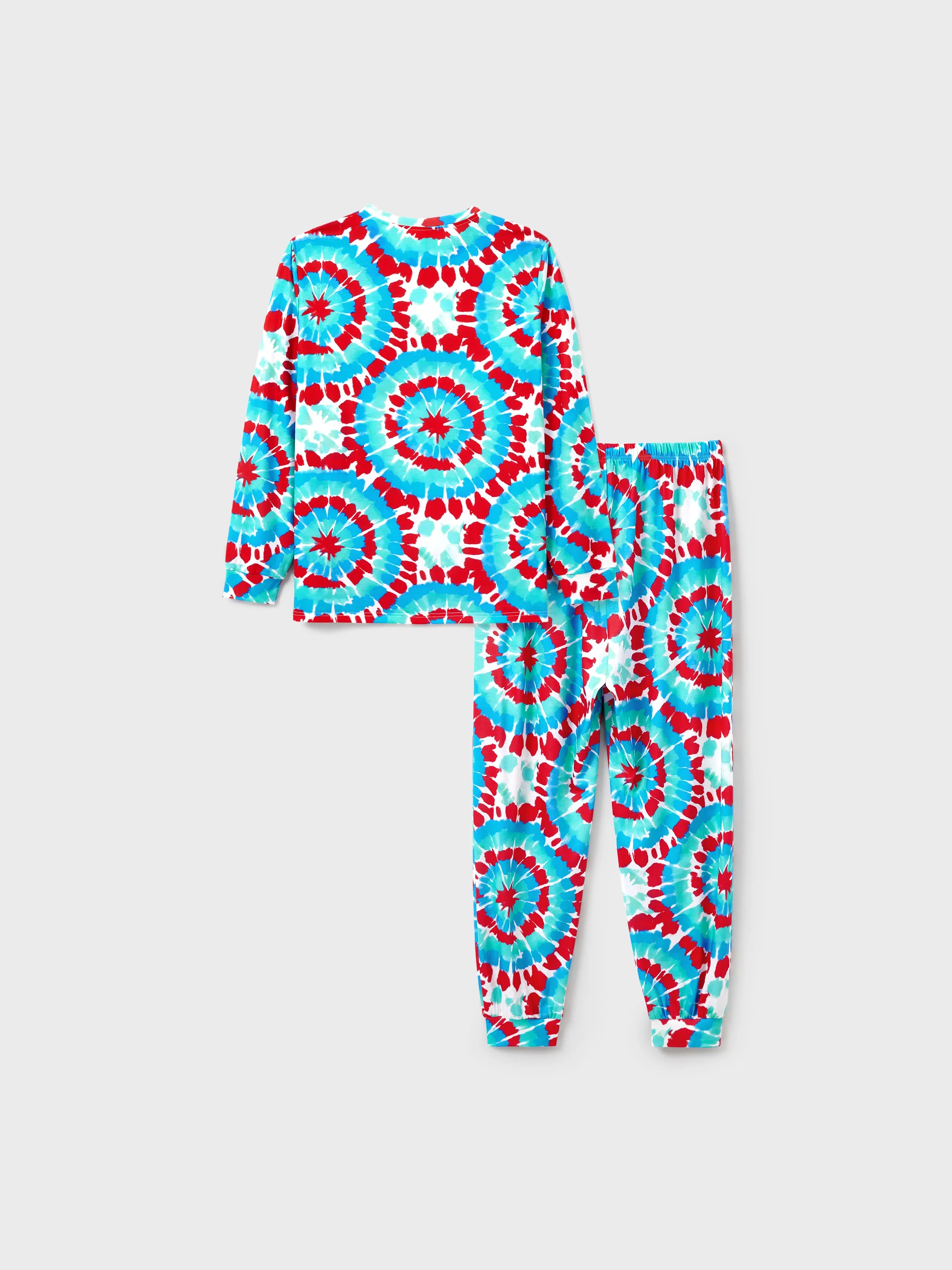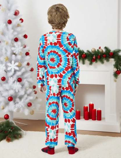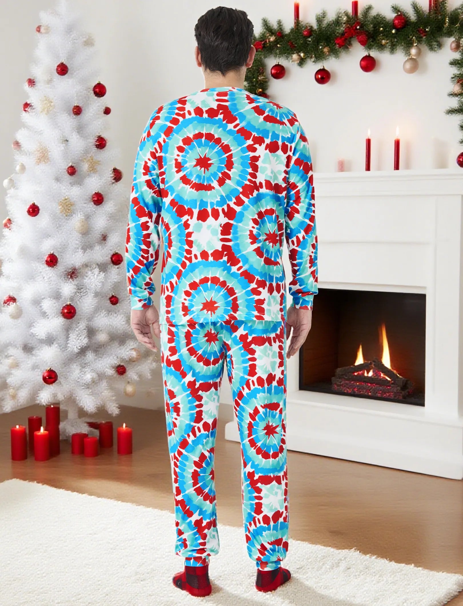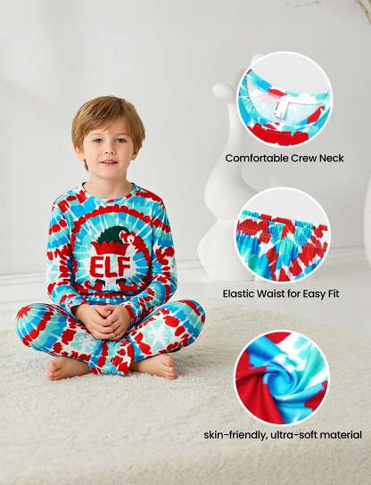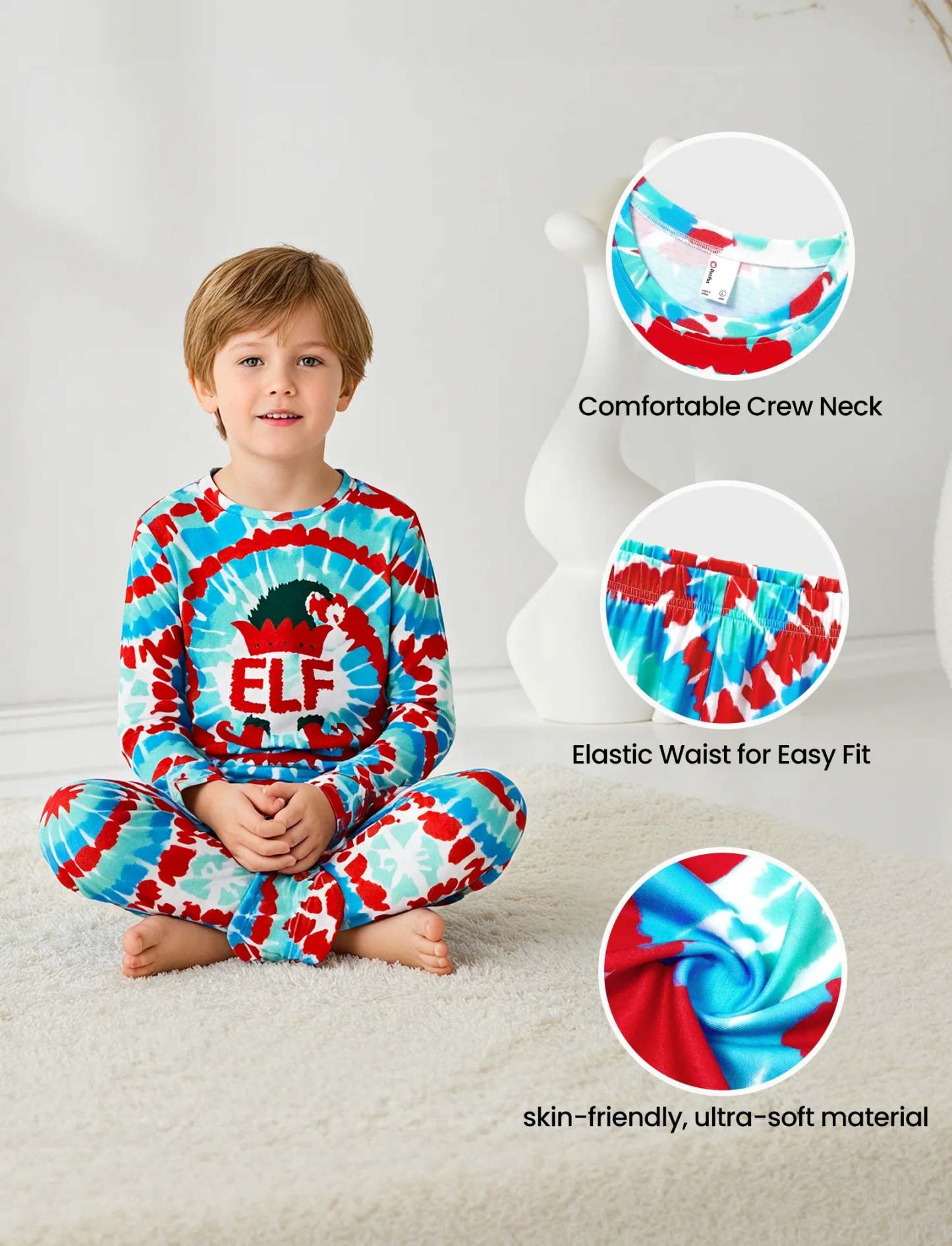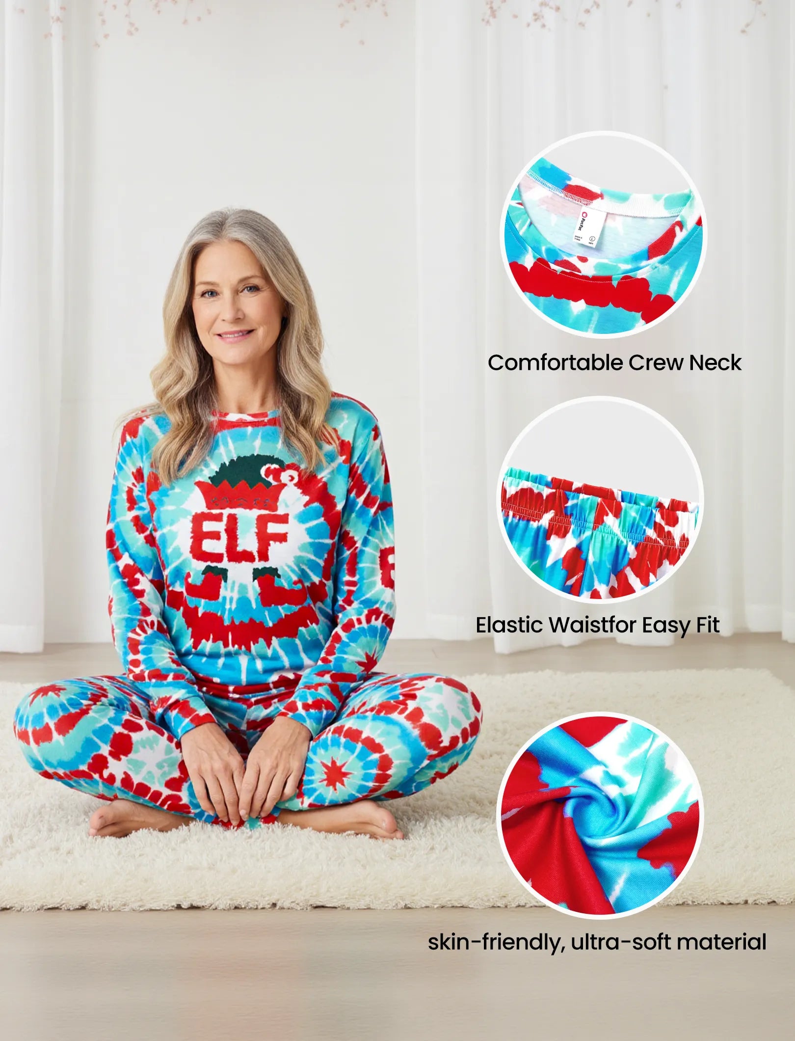 Christmas Matching Family Pajamas Set Christmas ELF Print Tie Dye Long-sleeve PJS with Christmas Socks Multi-color