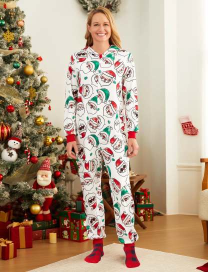 Get ready to feel the festive vibes with this comfortable Christmas family matching Santa Claus print pajama onesie. An ultimate comfy wear for the holiday season.