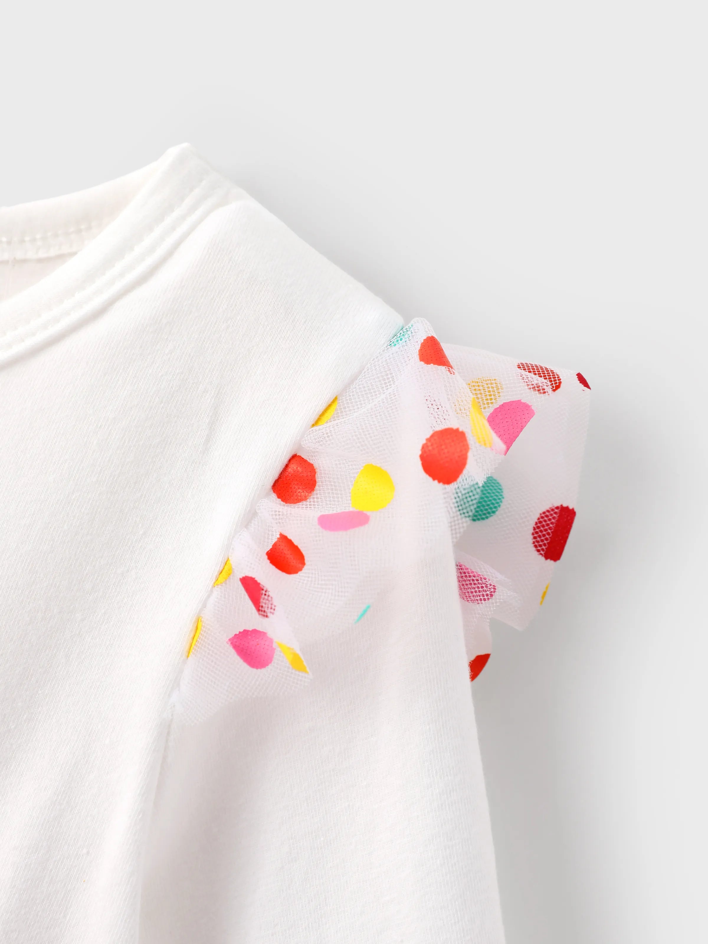 Dora Toddler Girl Knit and Mesh Splicing Polka Dots Dress White