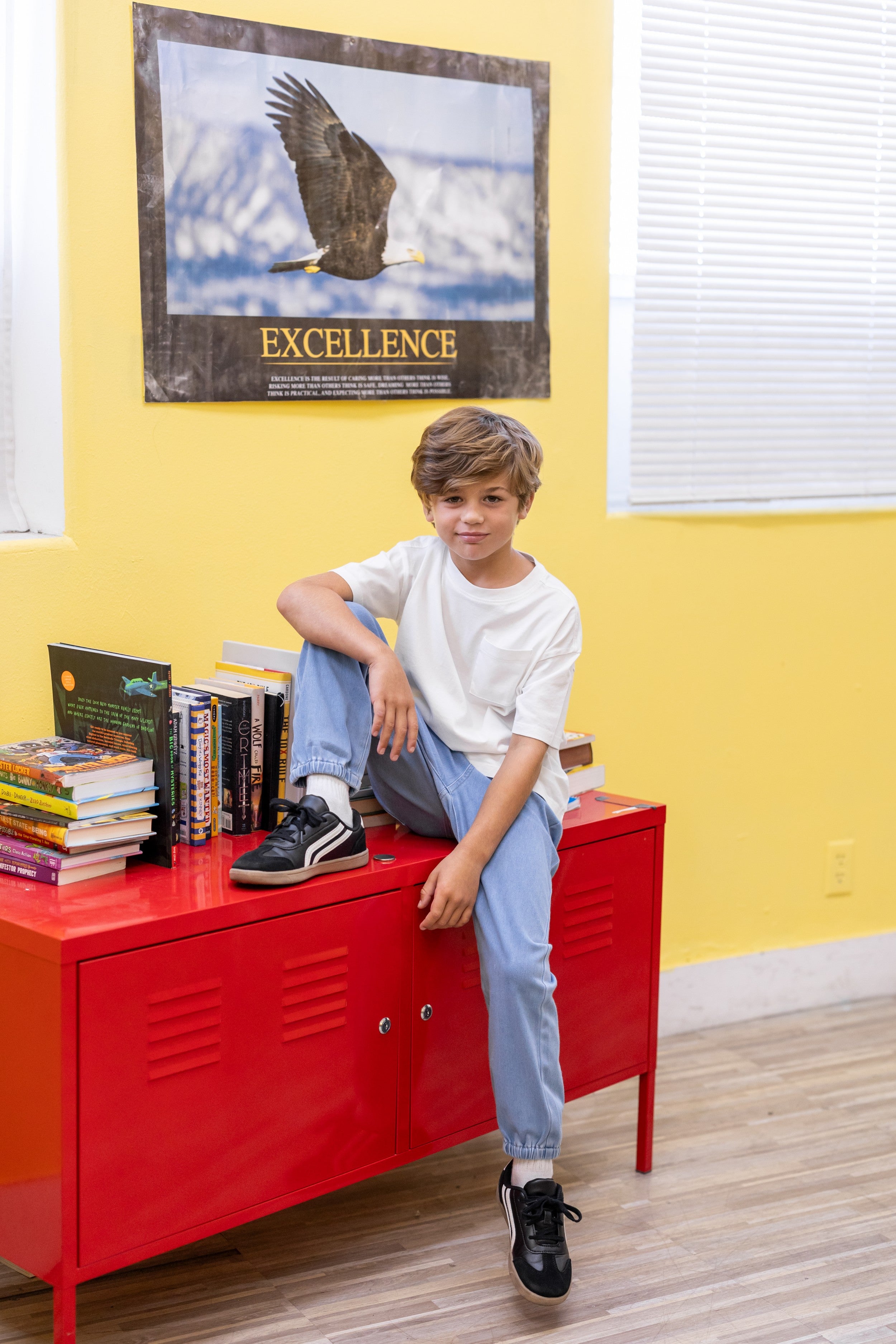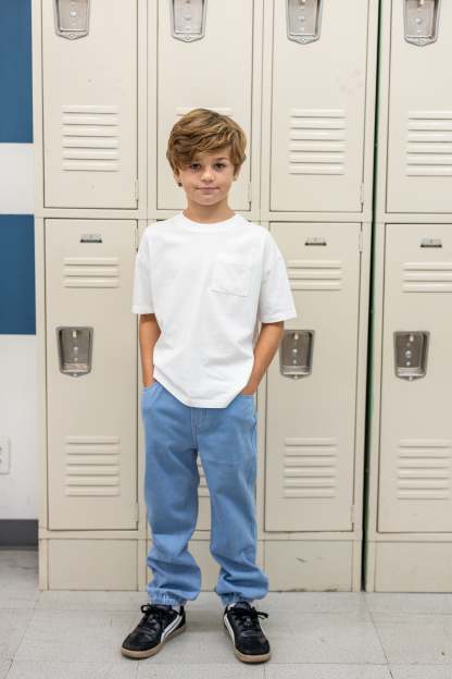 Comfortable, flexible kids' jeans combining style and freedom of movement.