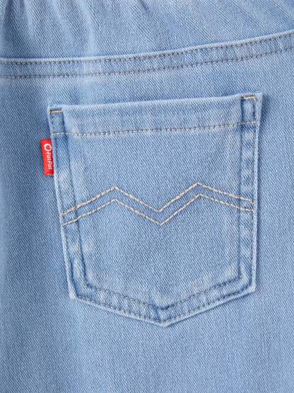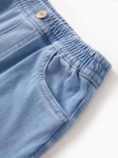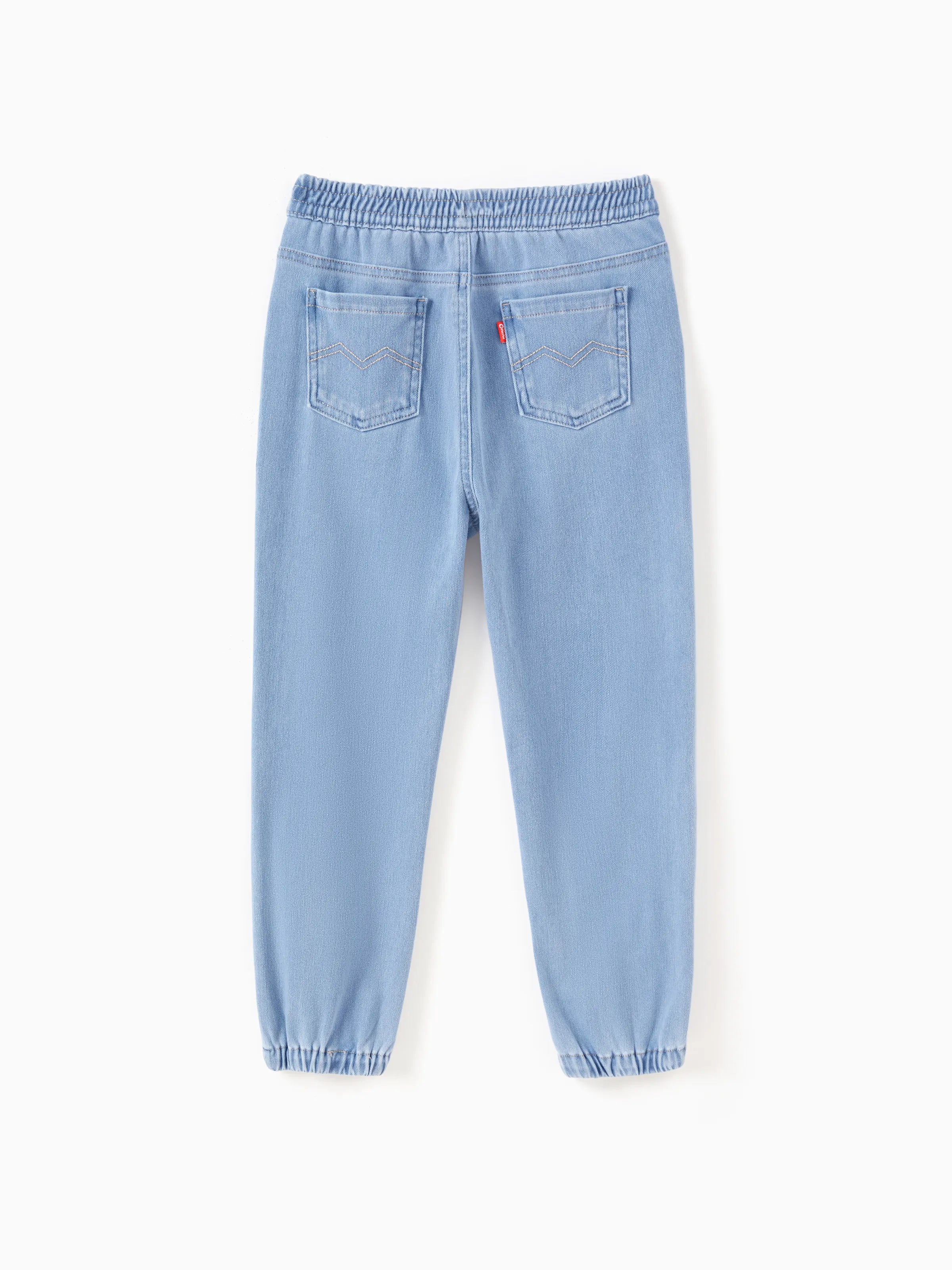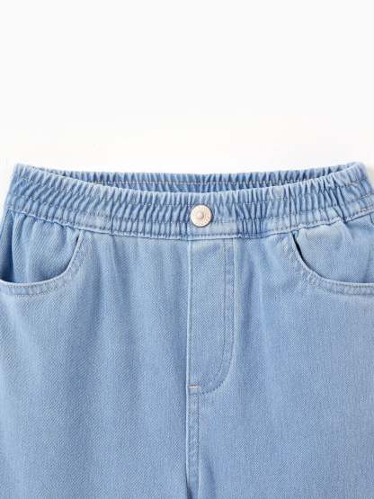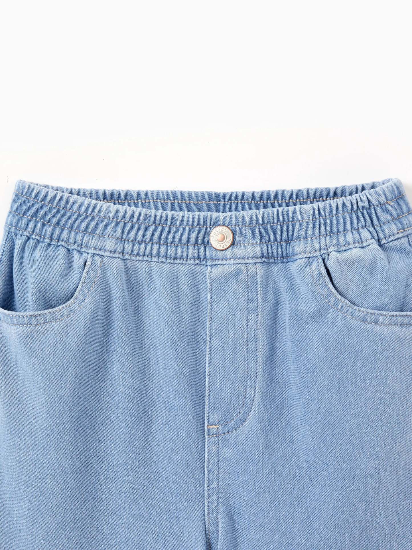 Kids Elastic Waist Denim Pants Soft Stretch Comfortable Everyday Jeans with Pockets Light Blue