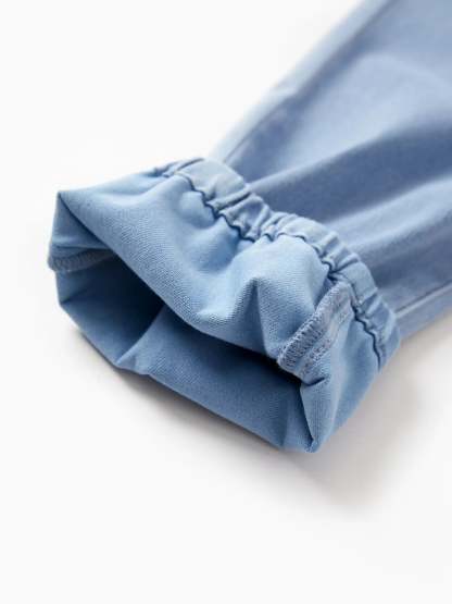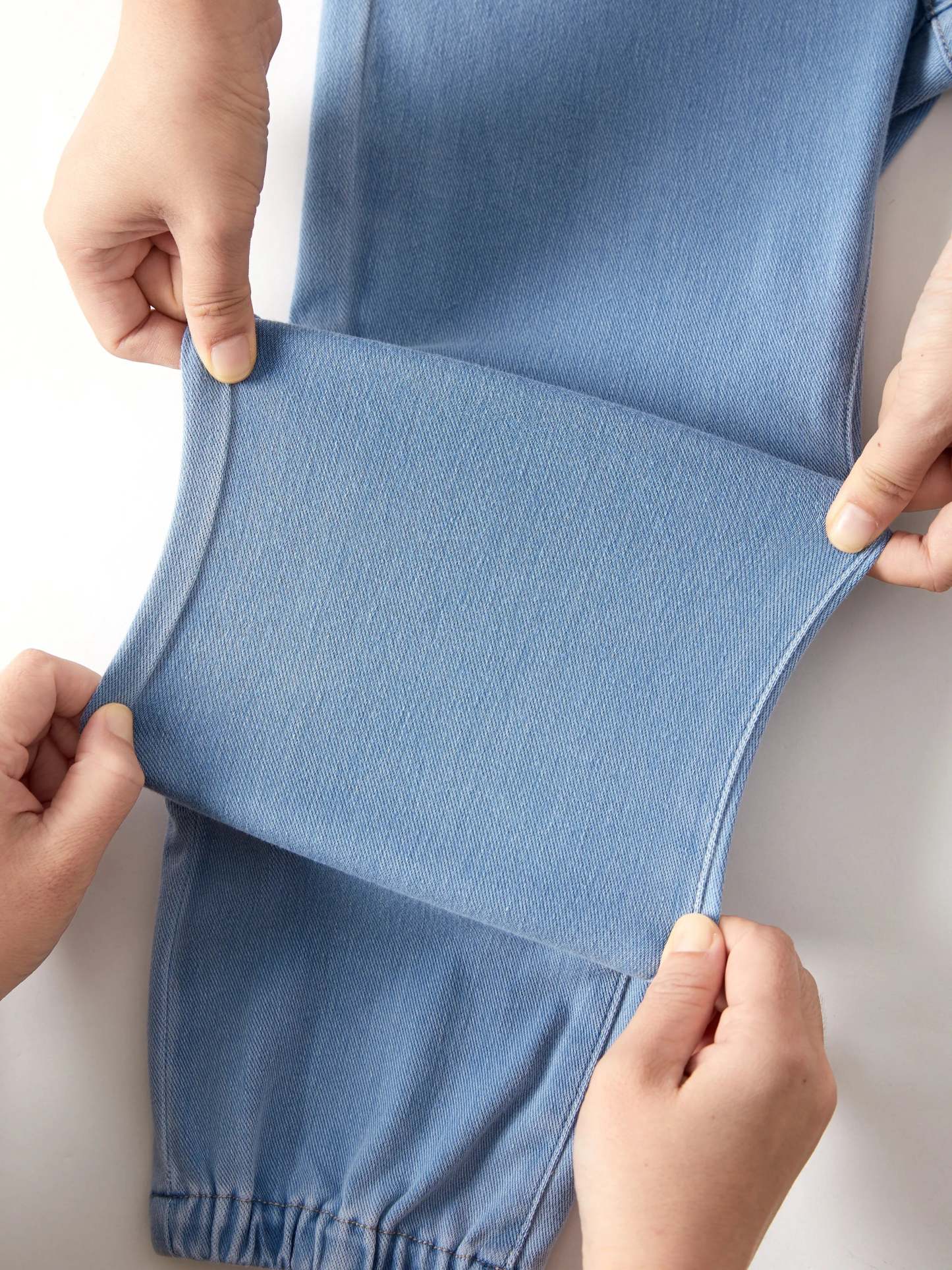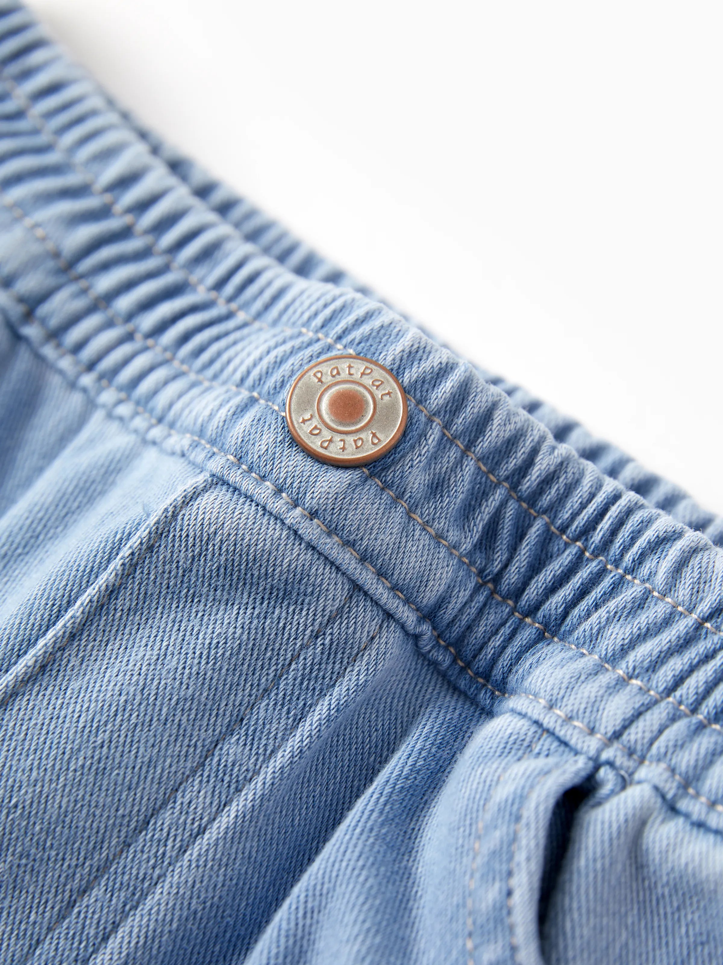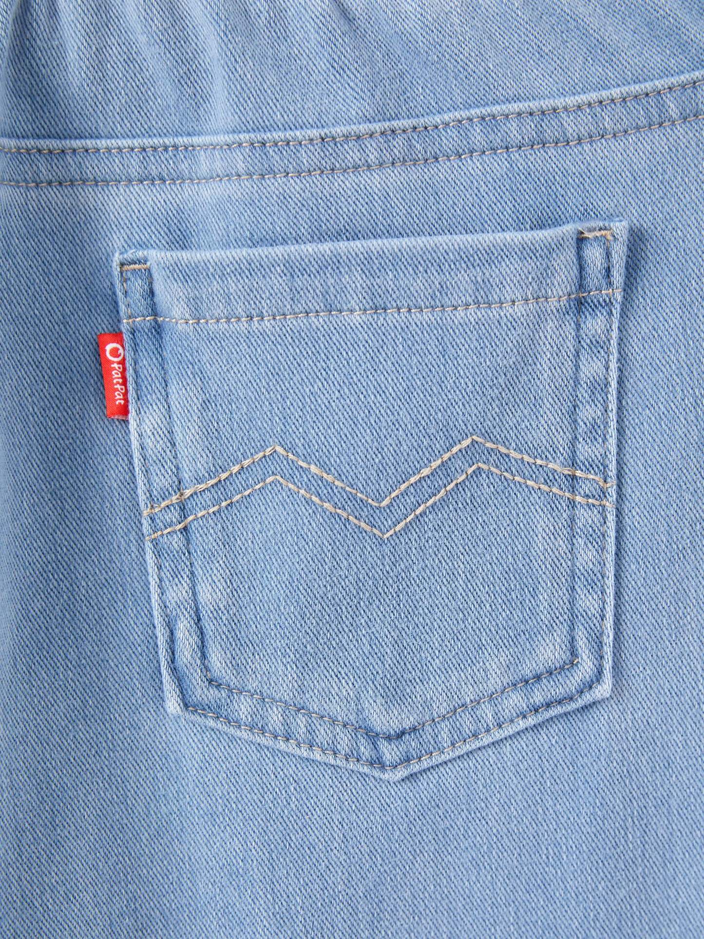 Kids Elastic Waist Denim Pants Soft Stretch Comfortable Everyday Jeans with Pockets Light Blue