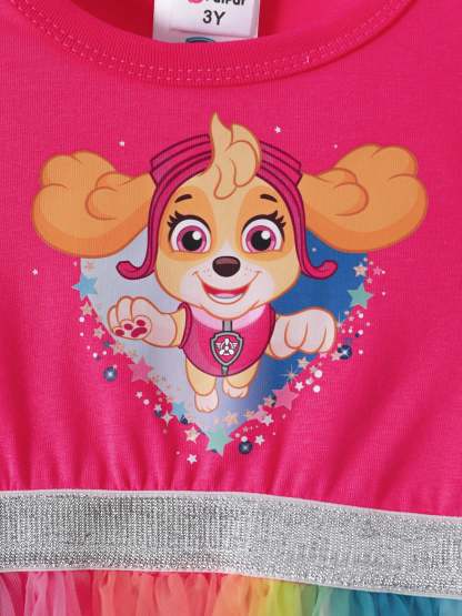 PAW Patrol Toddler Girl Skye Rainbow Flutter-sleeve Tulle Dress Roseo