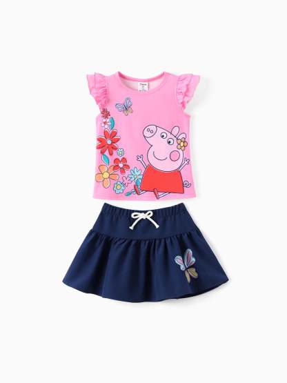Get your little one looking sweet and cute with this Peppa Pig T-shirt and skirt set. Perfect for daily outings, the set features a playful combination of botanical and butterfly elements in the IP character print.