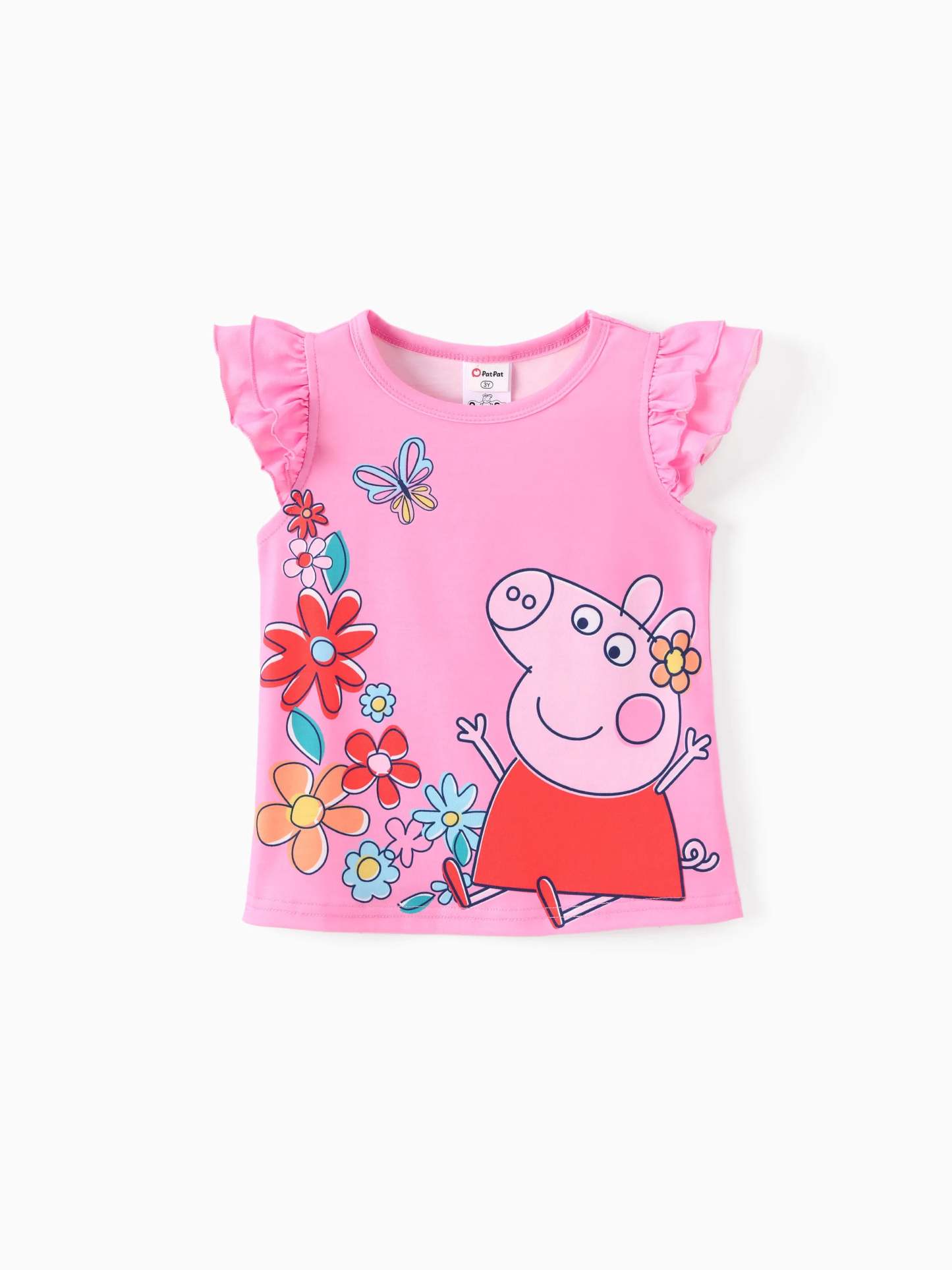 Peppa Pig Toddler Girl 2pc Character Floral Print Ruffle-sleeve Top And Skirt Set Pink