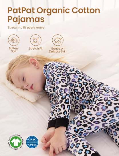 Upgraded Beyond 100% Organic Cotton: Crafted with 92% organic cotton and 8% spandex, these baby pajamas surpass traditional 100% organic cotton sleepwear in softness, stretch, and breathability. Our innovative blend addresses stiffness and restricted movement, providing a truly cozy sleep.Superior Stretch & Snug Fit: Designed for better elasticity than 100% organic cotton, our pajama sets offer a snug yet comfortable fit. The added spandex allows for easy movement, ensuring your baby and toddler sleep and play without restriction. Ideal for growing kids who need freedom to move and explore.Durable & Long-Lasting Fabric: Enhanced with 8% spandex, our pajama sleepers outperform traditional 100% organic cotton in elasticity and durability. The added stretch provides a snug yet flexible fit, allowing your child to move freely—making them ideal for active play and restful night's sleep.Certified Safe & Trusted Quality: PatPat organic cotton baby pajamas are GOTS Certified and meet strict CPSC standards for children's sleepwear. Safe, chemical-free, and natural, our pajamas are crafted with advanced fabric blending process, give your child the premium quality and comfort.Growth-Friendly Design for Little Ones: Thoughtfully designed with extendable cuffs and ankle hems, this pajama set adapts to your child's growth. The tagless design prevents skin irritation, making it gentle on sensitive skin, helping kids sleep soundly, and giving parents peace of mind.