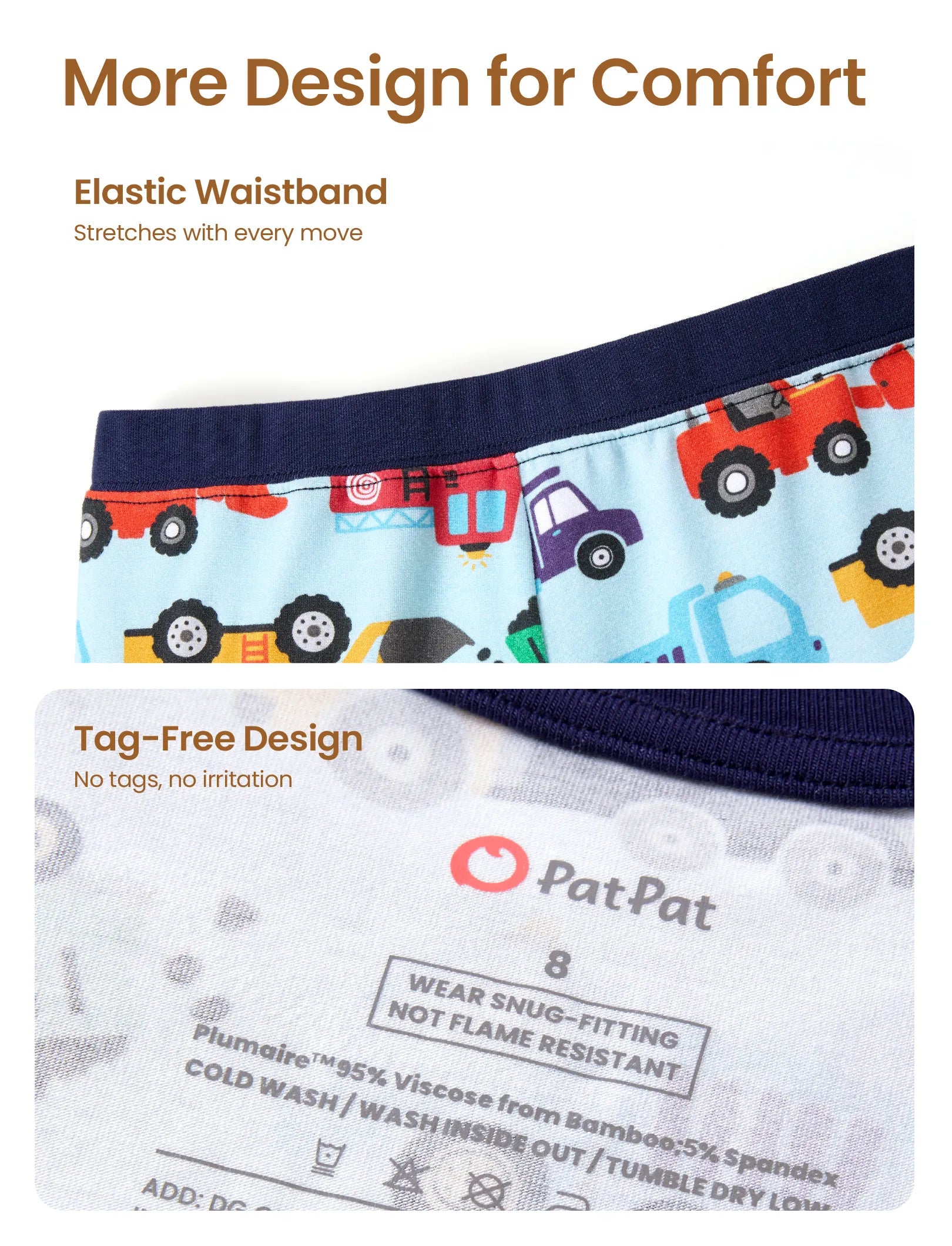 • Fabric characteristics: PatPat BambooCloud ™ - Softer than cotton, gentle on skin. AiryFlow™ Tech for rash-free, breathable comfort.
