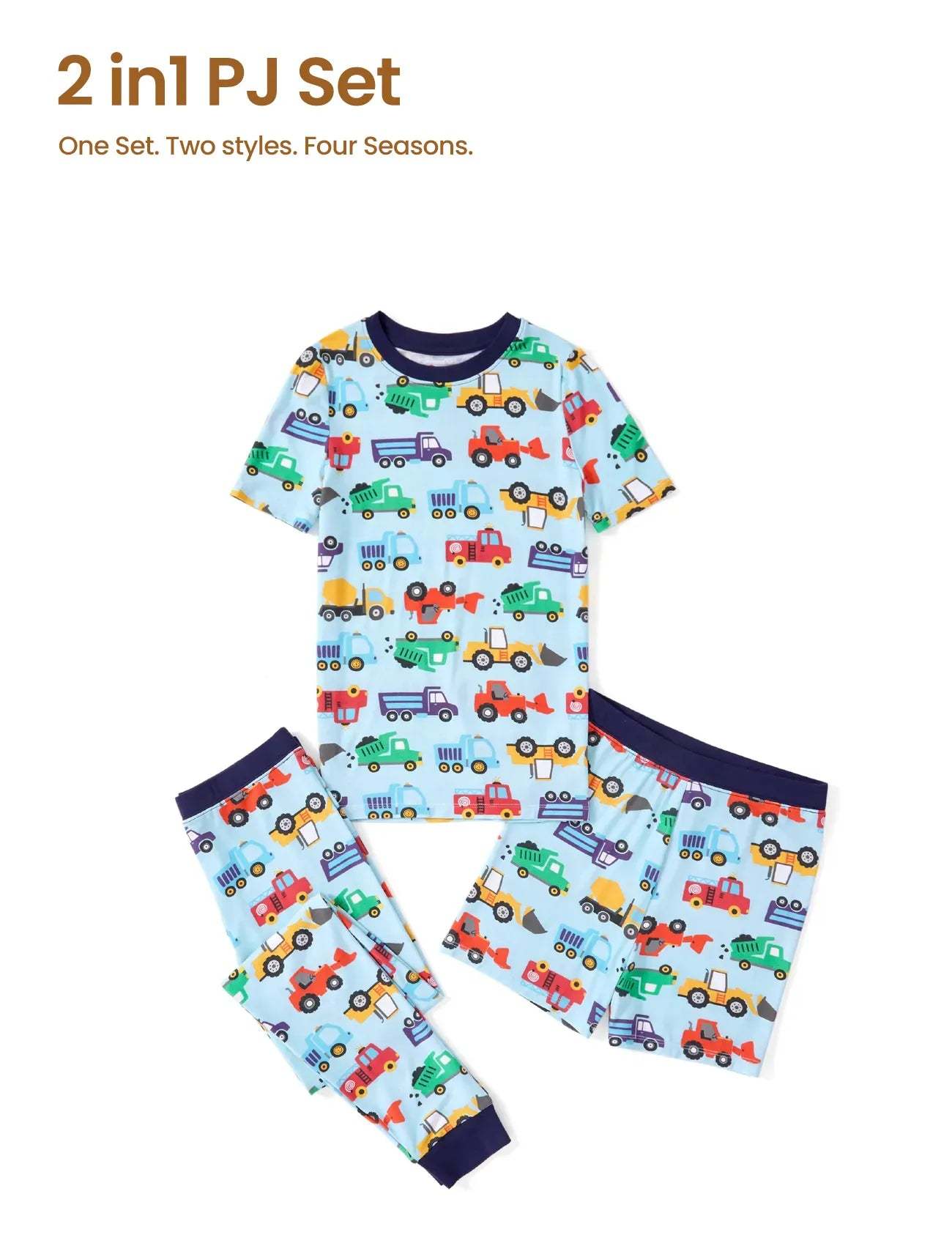 • Kids 3-piece pajamas, 2 in 1 PJ set, 1 Set 2 Styles for 4 Seasons.
